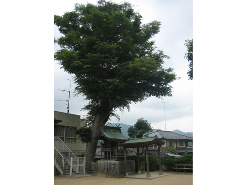 本殿後ろの欅の大木は、樹齢数百年で、御神木として崇められている。 |