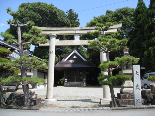 当社の創建は、所蔵する明治3年(1870)刊の『奉社伝記』によると、「五穀成就、一村安泰を祈り、大永6年(1526)8月13日、大歳神を奉斎、寛文9年(1669)、蝗害起きるに及び、祈願すれば、直ちに虫害治まった」と記されている。