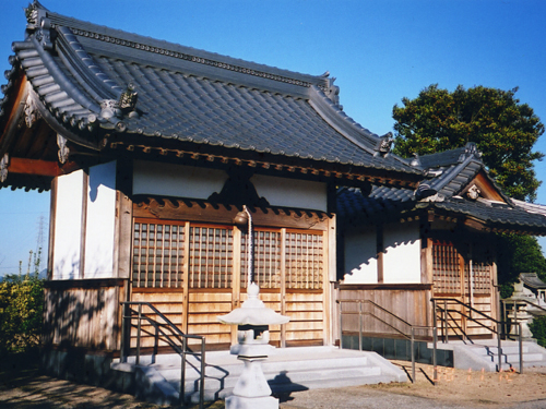 国道175号線加東市内の「沢部交差点」を「青野ヶ原駅」方面に曲がり、約2分先の「大門」交差点を左折します。道なりに2分程進み西古瀬集落に入り1分の所に座します。