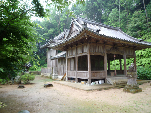 現在の玉垣は大正6年(1917)に整え、拝殿は昭和15年(1940)に新築している。ただし、かや葺の神殿はそのままにして、瓦屋根で周りを包んでいる。お宮全体建物としても、念入りにつくられている。