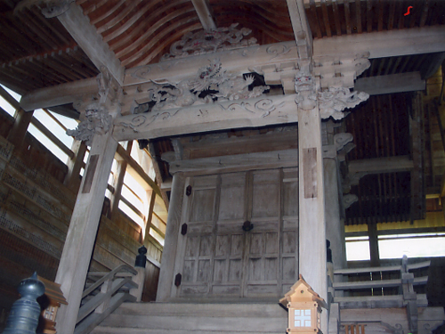 文政8年(1825)火災に罹り嘉永3年(1850)現本殿を造営、昭和13年(1938)現幣、拝殿を改築す。 |