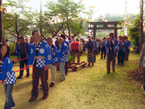 「練込」は昭和50年頃までは三曲(オンリョウ・シンバシ・ツルギバヤシ)を奉納したが、現在は中学生が打ち手の為、一曲(オンリョウ)のみの奉納となっている。 |