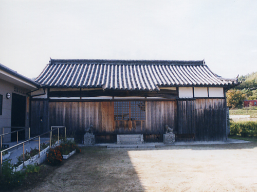 社殿は昭和25年(1950)の建築で、境内に天保11年(1840)建立の狛犬がある。裏側に石の小社が二つ並んでいる。大きな方は昭和50年(1975)頃金比羅山頂から移した金比羅宮で、小さい方は八百萬神を祀る。 |